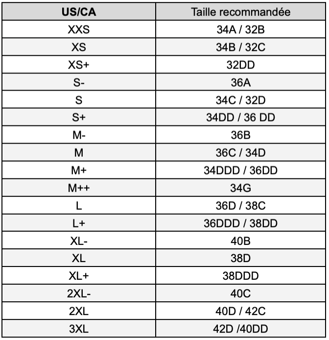 Pour les porte-jarretelles, nous recommandons de choisir la même taille que vos culottes.